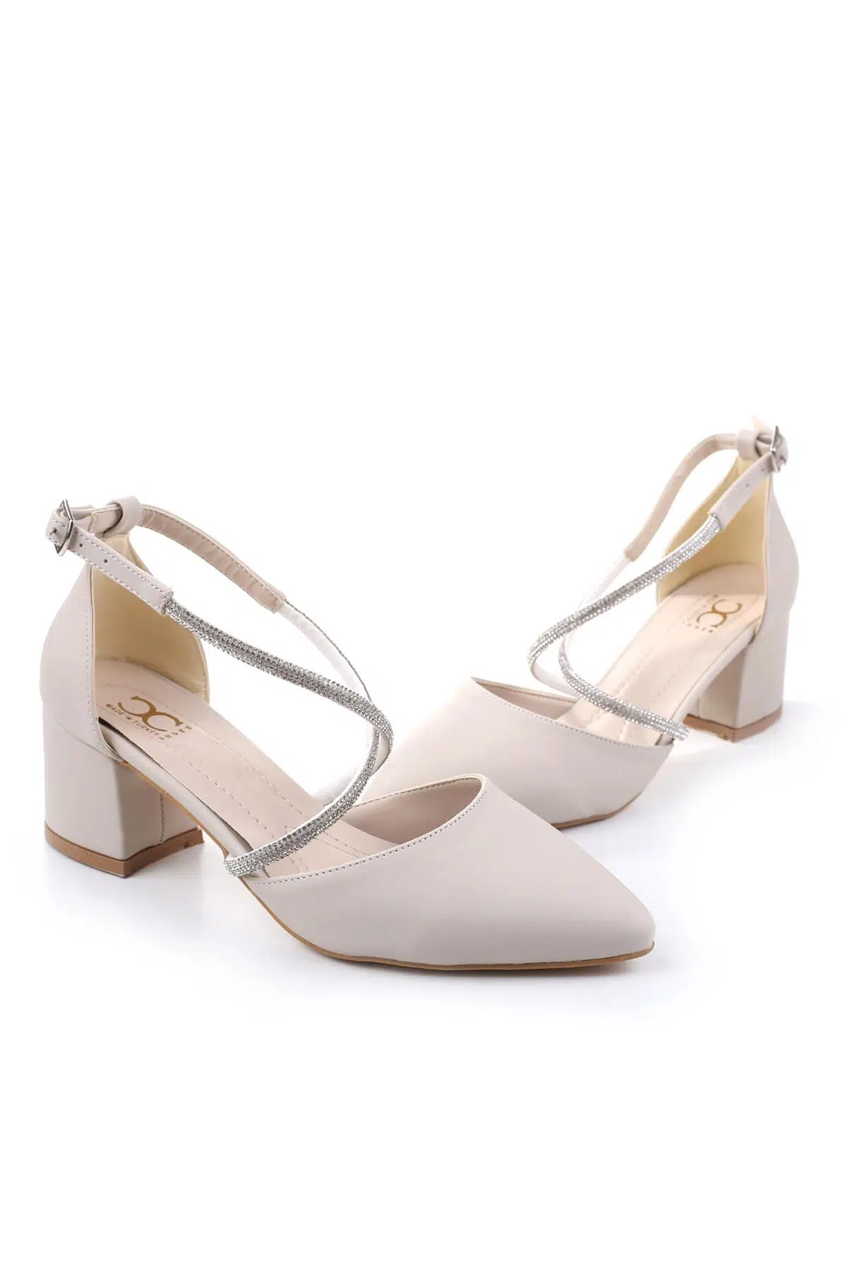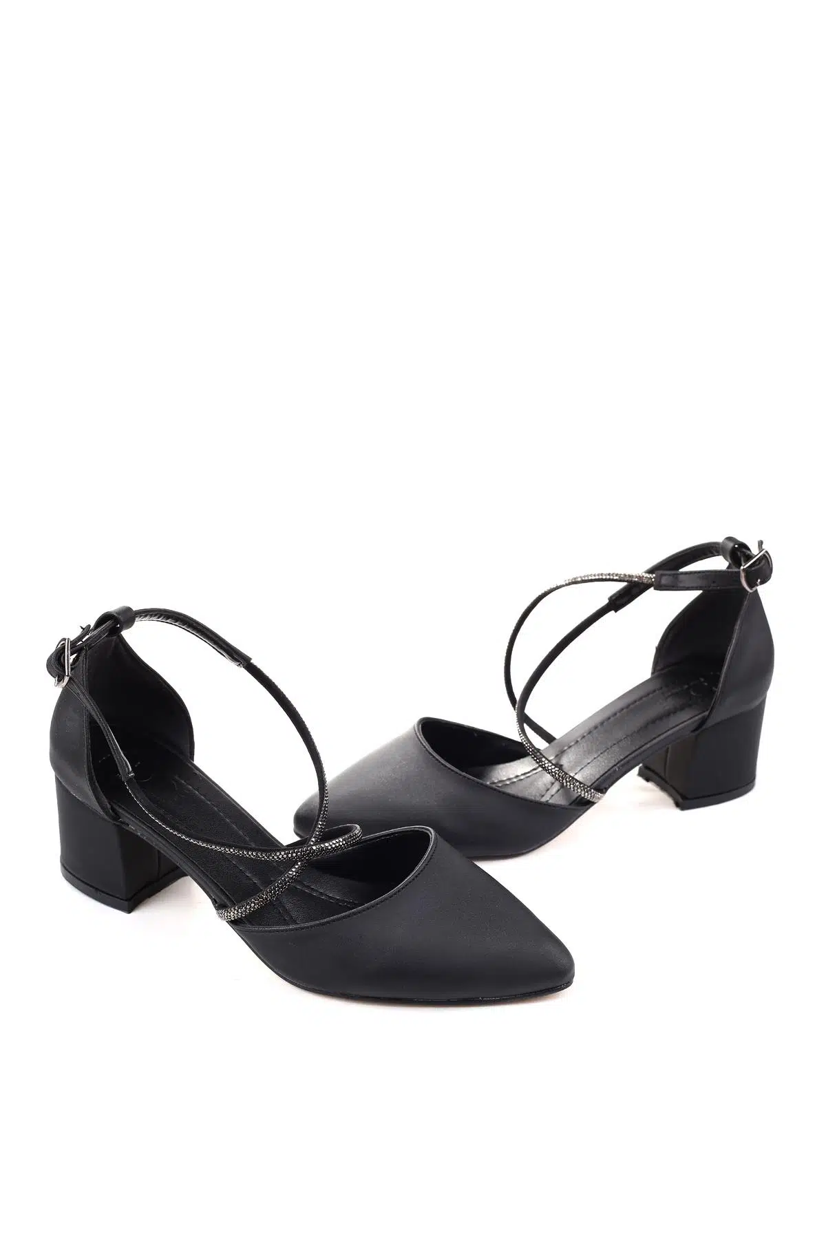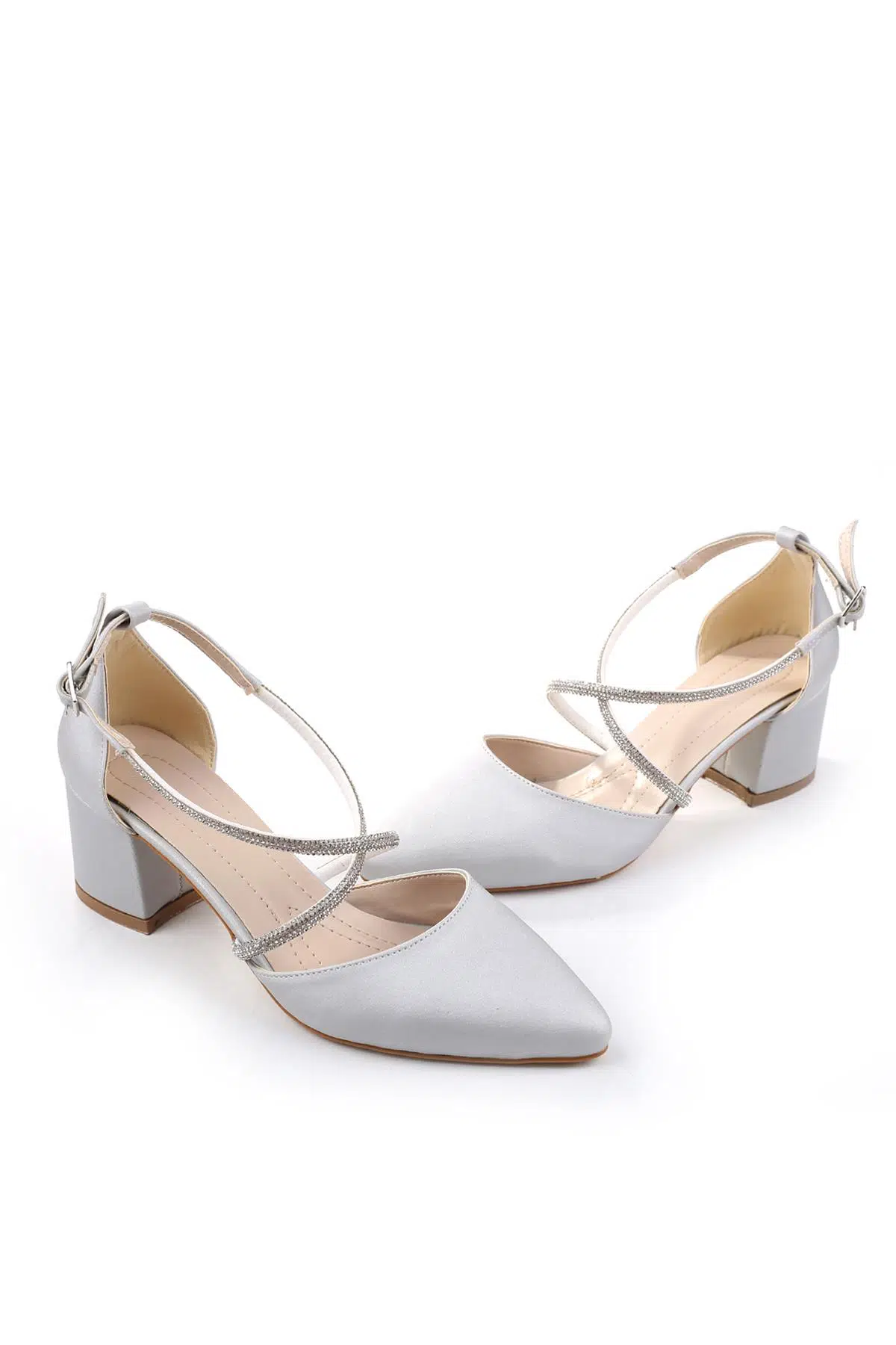 Ceylan 393914 Kadın Taş Detaylı 5,5 Cm Topuklu Saten Ayakkabı