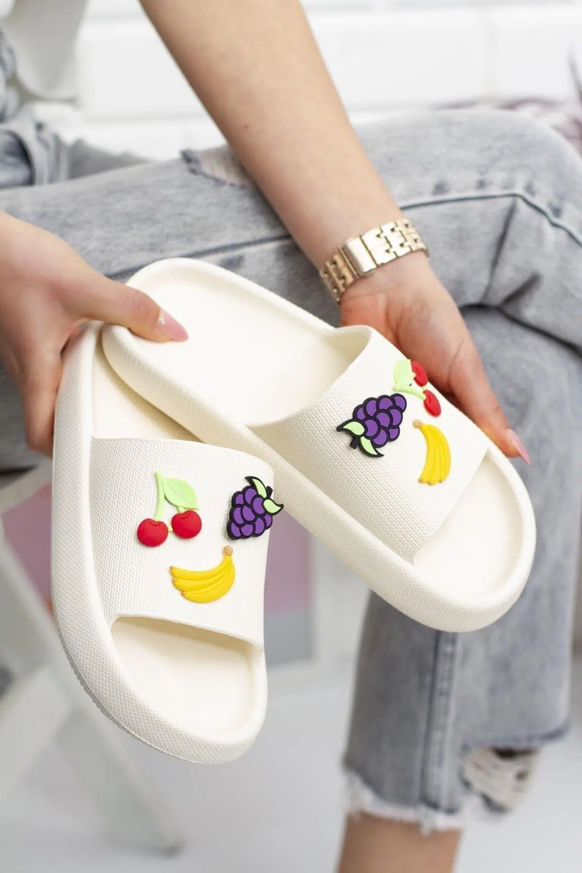Papuç Sepeti 1890 Kadın Eva Deniz Plaj Havuz Meyvalı Günlük Terlik