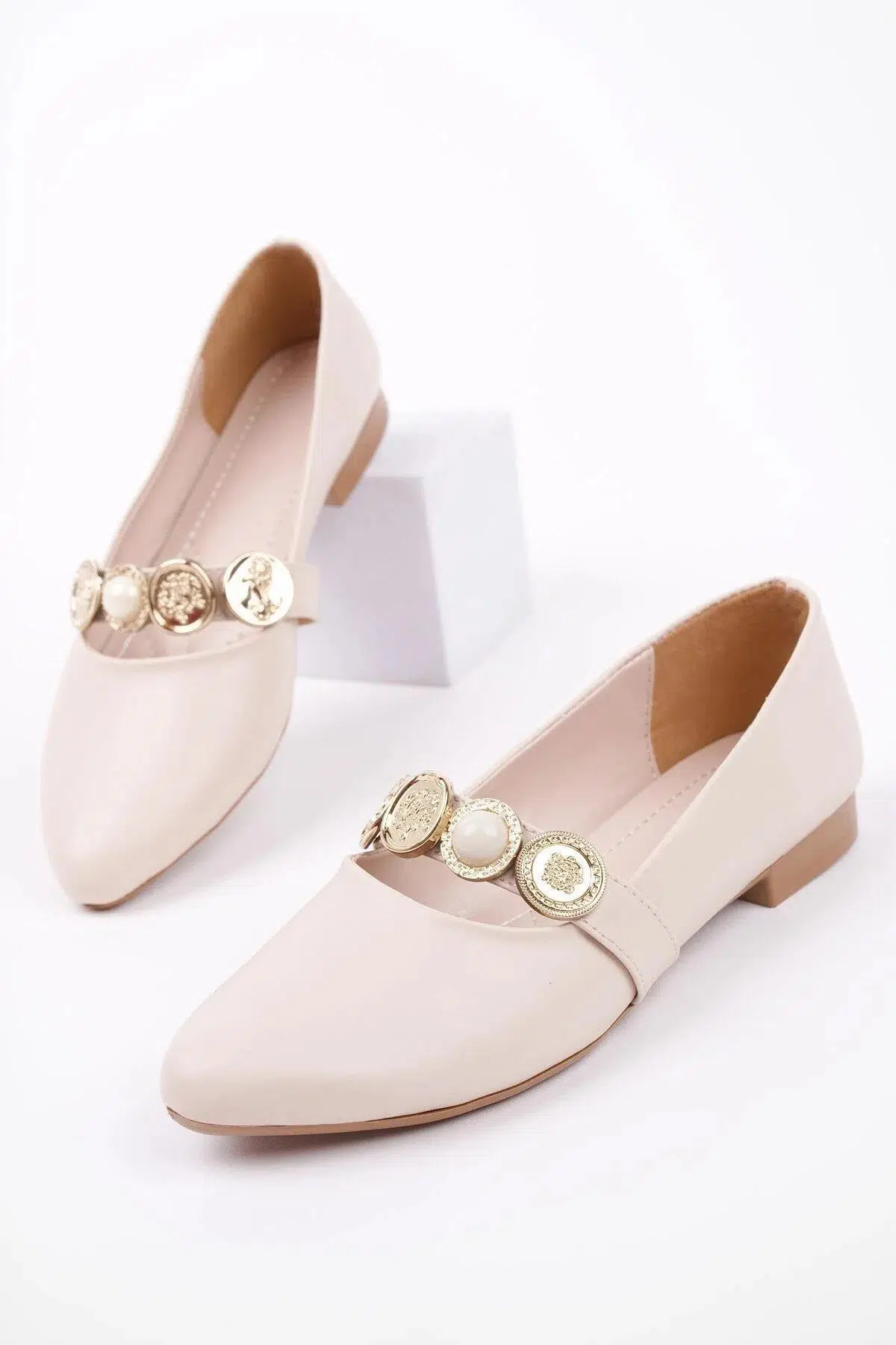 Papuç Sepeti BK06 Rahat Taban Broş Detaylı Günlük Kadın Babet Ayakkabı