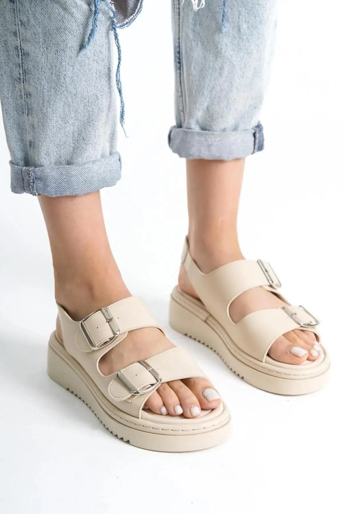 Papuç Sepeti Fncy-602 Günlük Kadın Çift Tokalı Rahat Sandalet