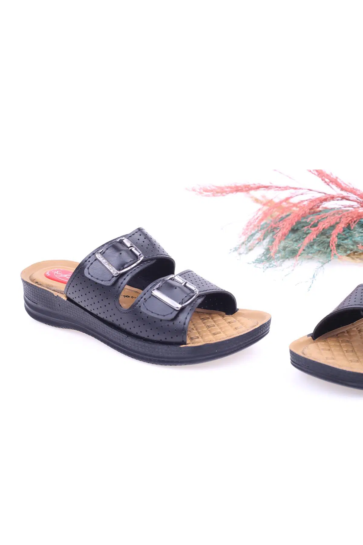 Papuç Sepeti Seher 1755 Kadın Çift Tokalı Ortopedik Günlük Terlik